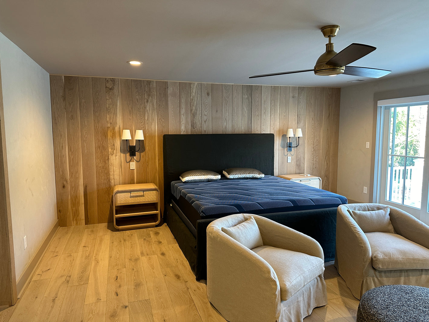 We made this wide plank accent wall out of White Oak with a wild grain variation to give it a vibrant look. We milled a tounge and Groove into the boards to make sure they stay flat for decades.